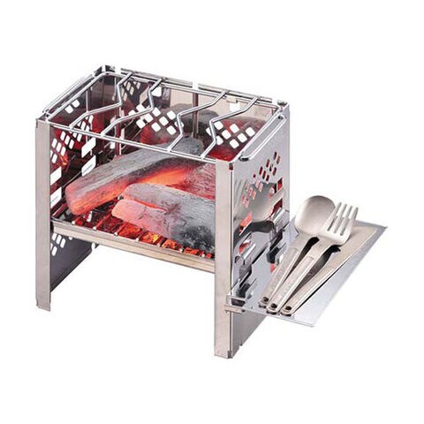 ○薪などの燃料がこぼれにくくするフロントパネルとして。