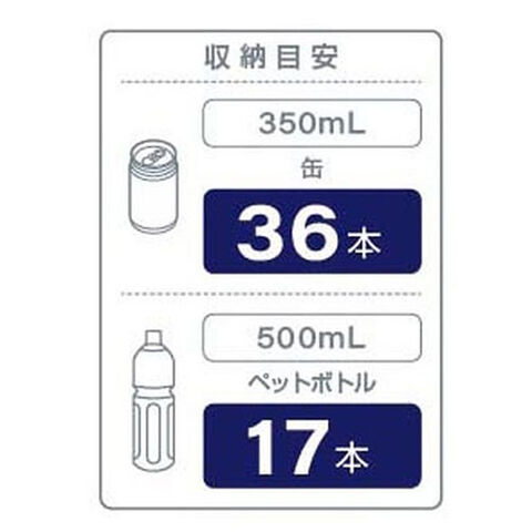 〇収納目安 : 350ml缶=36本、500mlペットボトル=17本