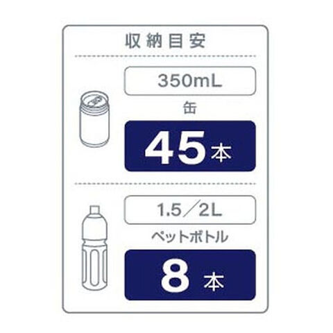 〇収納目安 : 350ml缶=45本、500mlペットボトル=8本