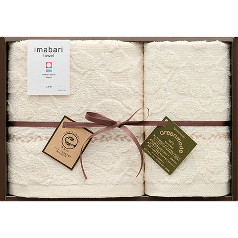 今治タオル グリーンモード 今治エコリーフフェイスタオル&ウォッシュタオル フェイスタオル33×85cm、ウォッシュタオル33×35cm B1051648