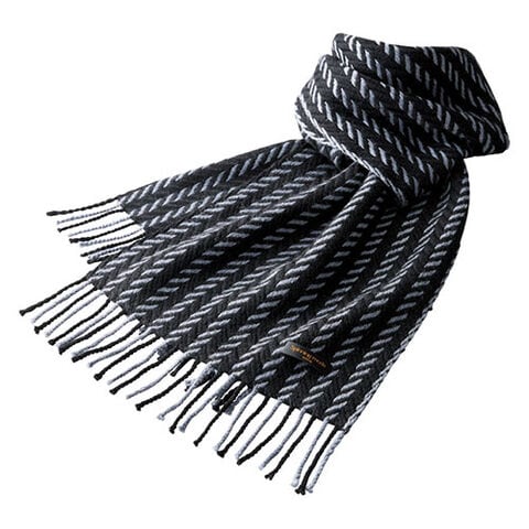 職人たちが長年培った妙技を大正時代の豊田式自動織機でゆっくり丁寧に織り上げる上質のカシミヤ混マフラー。柔らかいウールとカシミヤ素材をしっかり織り上げているのに優しい肌感触の風合いに仕上げるそれが妙技です。