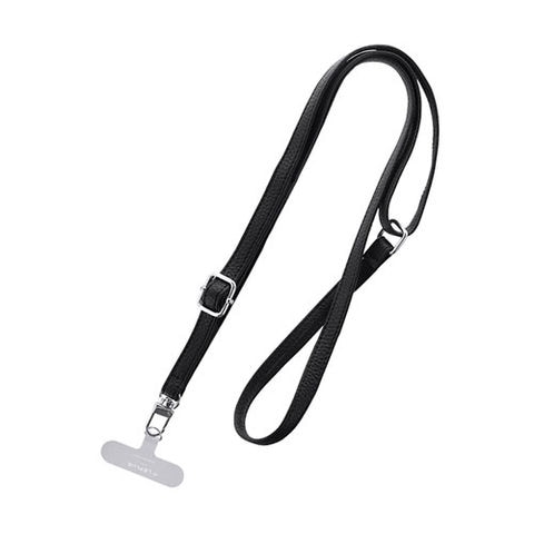 端末やケースを選ばず装着できる多機能ショルダーストラップ/付属の挟み込みシートで、ケースにストラップホールが無くても装着可能/首に負担をかけにくい平紐を採用/どんなコーデにも合わせやすいPUレザータイプ/長さ調整で首掛けor肩掛けが可能な2WAY仕様