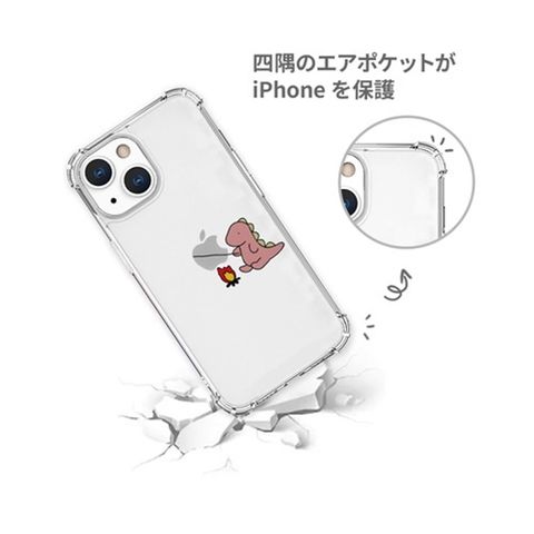 AKAN「ソフトタフケース」は、ケースの四隅にエアクッションがついており、衝撃を吸収するTPUケースに可愛いイラストが入ったクリアケースです。