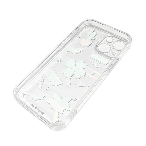 角度によってケースが虹色に表情を変え、オーロラのような美しい輝きとユニークなイラストデザインが心躍るiPhoneケース