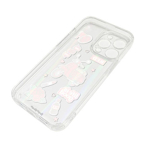 角度によってケースが虹色に表情を変え、オーロラのような美しい輝きとユニークなイラストデザインが心躍るiPhoneケース
