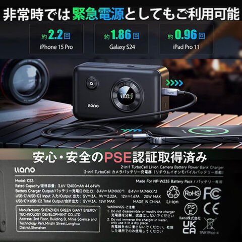 llano CS3 2in1 カメラバッテリー充電器 NP-W235用 CS3W235