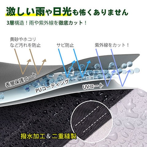 テントに匹敵する丈夫さ】極厚420Dオックスフォード生地を採用しました。通常のビニール生地よりも厚くて丈夫!精密な二重縫製でより丈夫なつくりに!長期間の継続利用を実現、あたなの愛車をしっかり守ります。