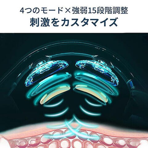 EMS温熱器「SKG」には、4つの刺激モードと強弱15段階調整機能が搭載されています。心地良いと感じる刺激に、自由にカスタマイズ頂けますよ!