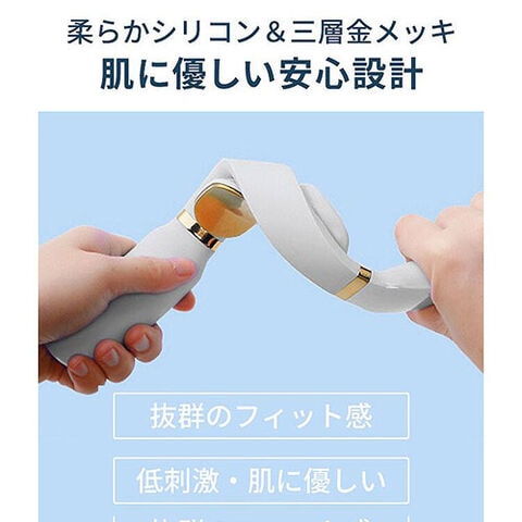 「SKG」の本体には、メイン素材としてソフトシリコンを採用。首の細い方から、太い方まで、しっかりフィットします。上の写真のように、捻じ曲げても元に戻る優れもの!また、シリコン素材は、肌に優しい素材でもあり安心してお使いいただけますよ。