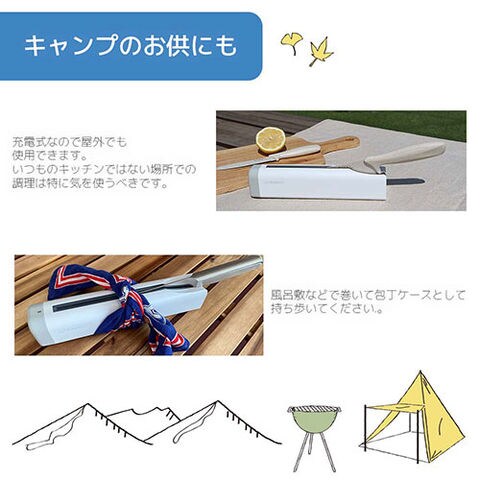 あなたの包丁、たったの3分間でかんたん除菌! お手入れもらくらく、充電式なのでキャンプのお供にも!