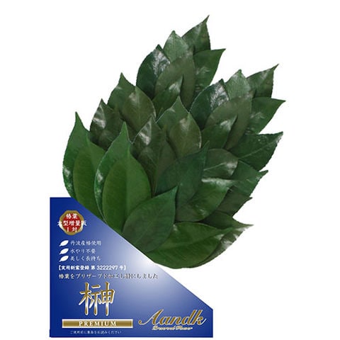 丹波産・高級椿葉を使用したプリザーブド加工の榊です。毎日の水替え不要、3年以上美しい状態を保つことが可能で、非常に長持ちします。