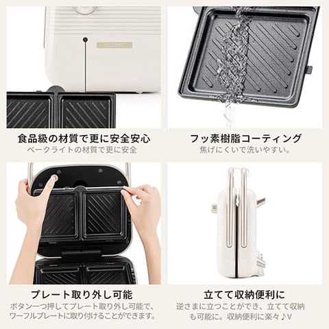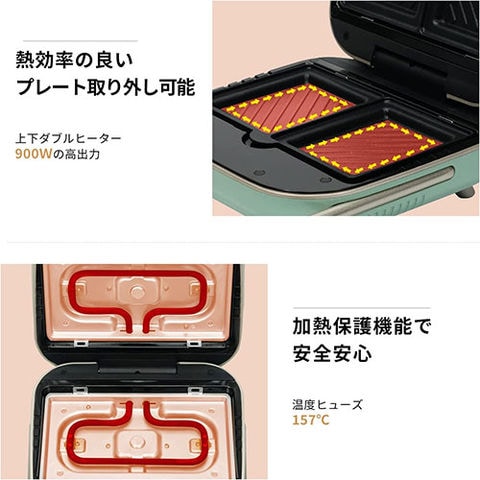 2枚同時焼き可能!3つのプレートが付属、作れる料理の種類は豊か!