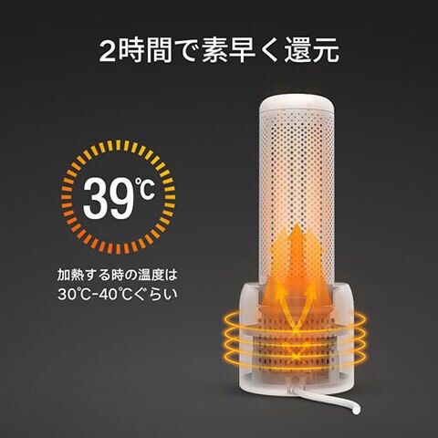 【水捨て不要でより良い使いやすい】該当除湿機は充電乾燥タイプで中のシリカゲルを加熱するだけでシリカゲルの水分を揮発して乾燥状態に戻れます。