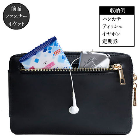 大人の風格漂う本牛革仕様! シックなブラックで大人の風格漂う逸品。多機能ポケットのミニクラッチバッグ