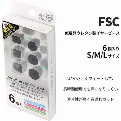 低反発 ウレタン製 イヤーピース 6個入り Lサイズ FSC FS-EPPU01L-BK
