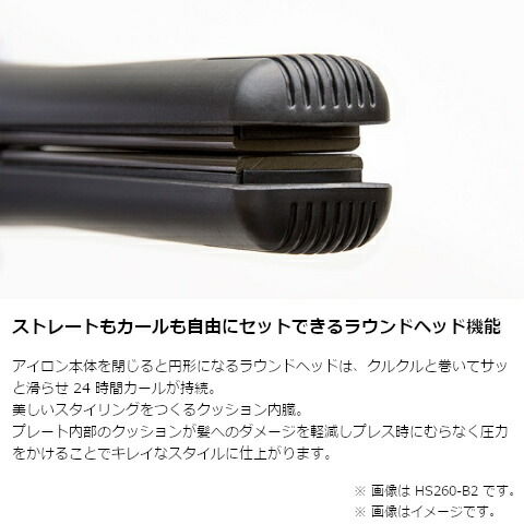●アイロン本体を閉じると円形になるラウンドヘッドは、クルクルと巻いてサッと滑らせ24時間カールが持続。美しいスタイリングをつくるクッション内臓。プレート内部のクッションが髪へのダメージを軽減しプレス時にむらなく圧力をかけることでキレイなスタイルに仕上がります。