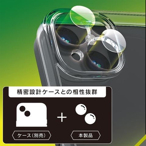 iPhone 15/15 Plus用精密設計ケース専用 スーパークリア レンズ保護ガラス 光沢 トリニティ TR-IP23M2-LGL-ARCC