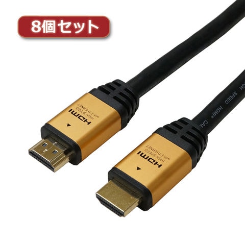8個セット HORIC ハイスピードHDMIケーブル 10m 4K 3D HEC ARC フルHD 対応 金メッキ端子 ゴールド AWG26 HDM100-001GDX8