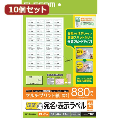 10個セットエレコム 宛名・表示ラベル 速貼 44面付 48.3mm×25.4mm 20枚 EDT-TMQN44X10