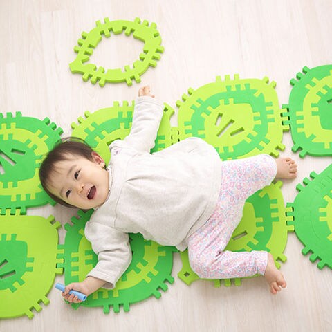 大中小3種類のパーツを組み合わせて遊べる玩具です。ドーム状に組んで秘密基地を作ったり、長くつないでケンケンパをしたり、子供たちが自分だけの特別な空間を作って遊べます。