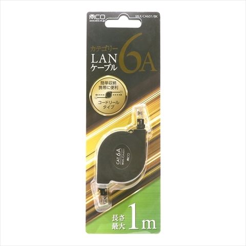 【5個セット】 ミヨシ コードリール CAT.6A LANケーブル 1m ブラック MUL-CA601/BKX5