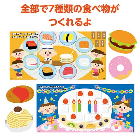 自由に切って、貼って、塗って、おいしい食べ物を完成させよう!はさみ・のり付、全16ページ