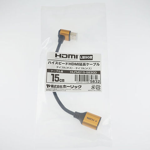 【5個セット】ホーリック HDMI延長ケーブル L型90度 15cm ゴールド HLFM015-583GDX5