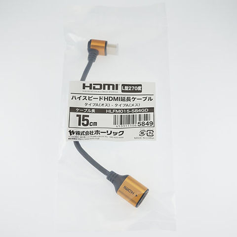 【5個セット】ホーリック HDMI延長ケーブル L型270度 15cm ゴールド HLFM015-584GDX5