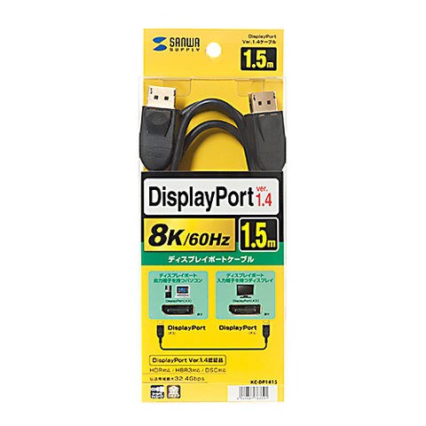 【5個セット】 サンワサプライ DisplayPortケーブル 1.5m(Ver1.4) KC-DP1415X5