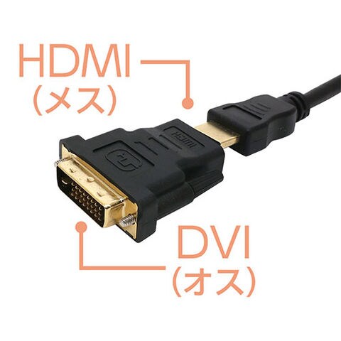 形状:HDMI Aコネクタ(メス)- DVI-D(24+1ピン オス)(シングルリンク)