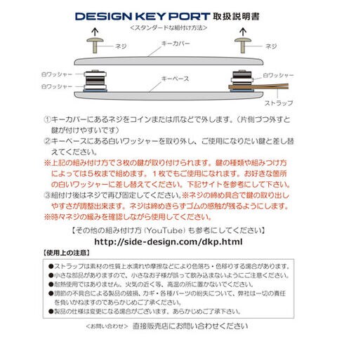 SIDE デザインキーホルダー Design Key Port カギ3枚収納 クローム 革ストラップ ブラック S001