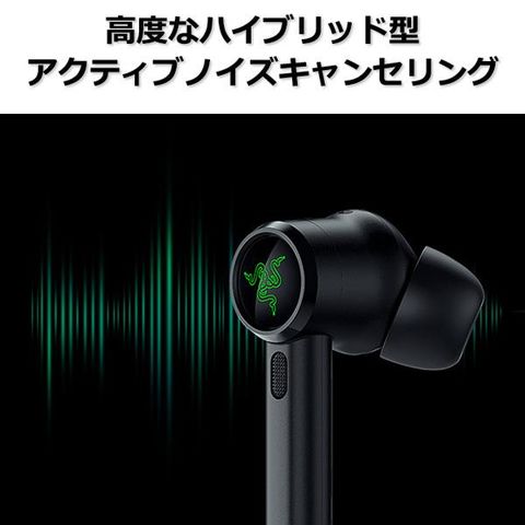 ●Razer の最先端設計により、イヤフォンの内外から集音したノイズを消す音波を発生させて周囲のあらゆる音をシャットアウトするため、再生サウンドのみに集中することができます。