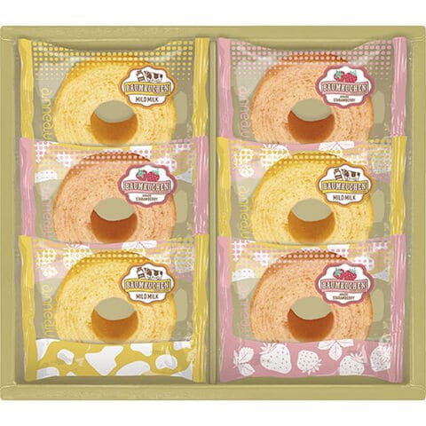 セット内容 : バウムクーヘン(ミルク・あまおういちご)×各3