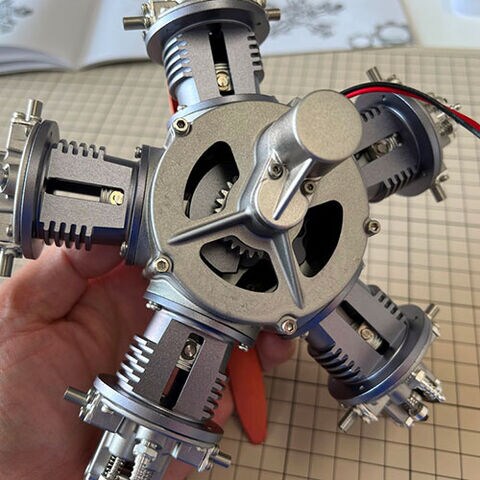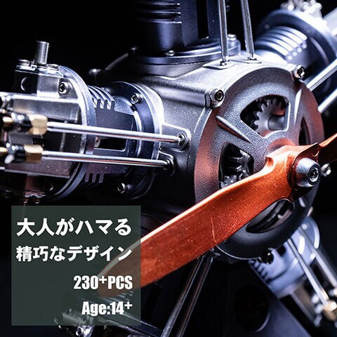 構造を実物のエンジンと同様の構造にして星形エンジンが複雑な原理で動作している様子が理解できます。