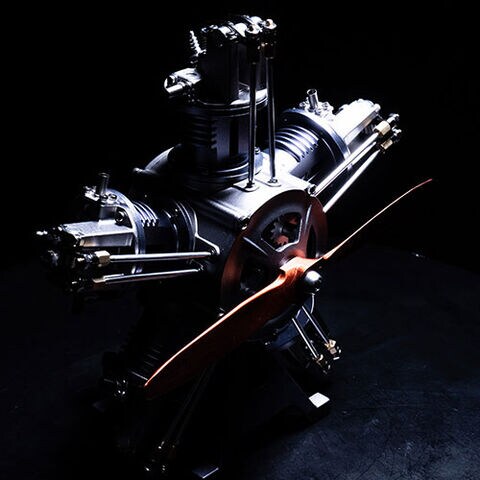 星形エンジンはラジコン飛行機にもよく採用されるエンジンですが、落ち着いて回転する構造を室内で見ることもできます。