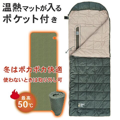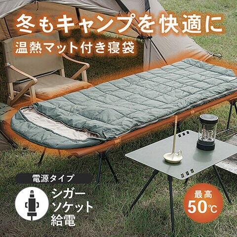 冬でもキャンプを快適に! 温熱マットを内蔵したあったか寝袋・シガーソケット給電タイプ。オールシーズン対応