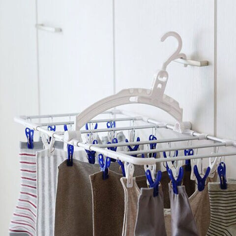 〇バーを広げることで、洗濯物が密集せず、風が通って速く乾きます。フック角度が変えられて、ドア上部、イス(背もたれ)、かもいなど室内の様々な場所に掛けられます。またアルミ製なので丈夫で長持ち。