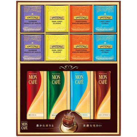 豊かな味と香りの「モンカフェ」と気品溢れる英国紅茶の「トワイニング」をひとつにした、どなたにも喜ばれるお薦めのギフトです。