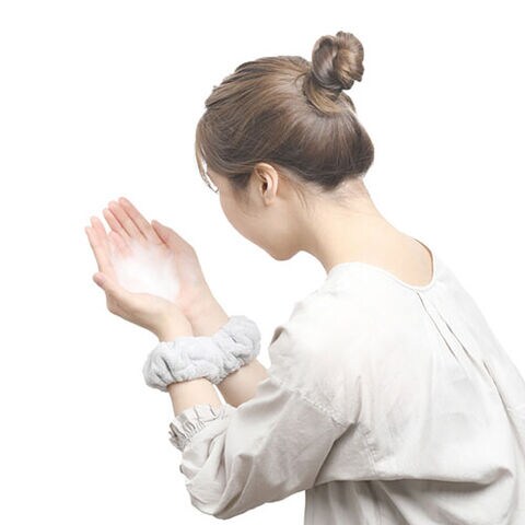〇洗顔時に、手首にはめて洗顔時の袖ぬれるのを防ぎます。