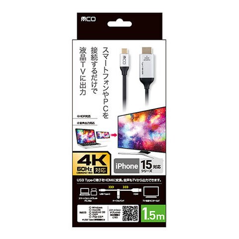 ナカバヤシ Type-C HDMIケーブル 4K60Hz対応 1.5m ブラック USD-4K15BK