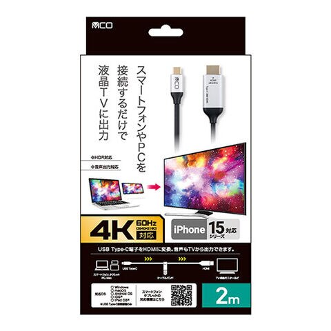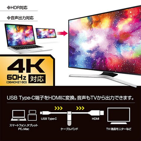 スマートフォンやPCを接続するだけで液晶TVに出力 USB Type-C端子をHDMI端子に変換