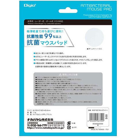 ナカバヤシ 抗菌マウスパッド ホワイト MUP-931W