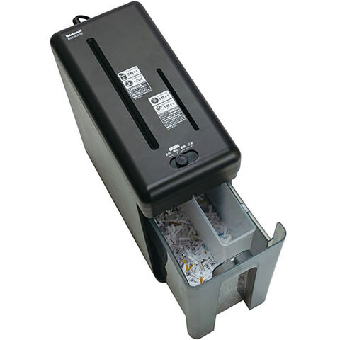 ●最大細断枚数紙/5枚(A4上質紙64g/平方m)※郵便はがき/1枚(厚み0.2mmまで)、CD・カード/1枚