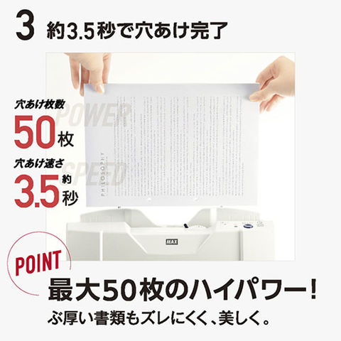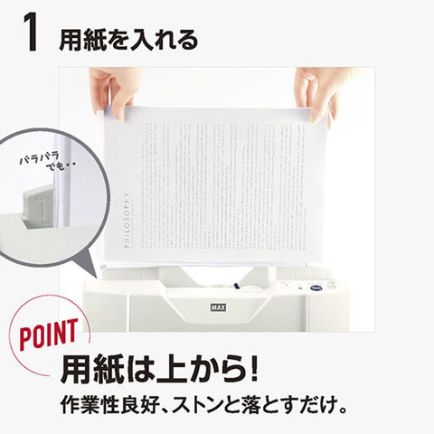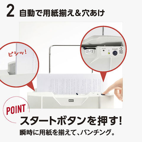 自動で紙をそろえて穴あけします ぶ厚い書類もオートでラクラク! 穴ズレもありません