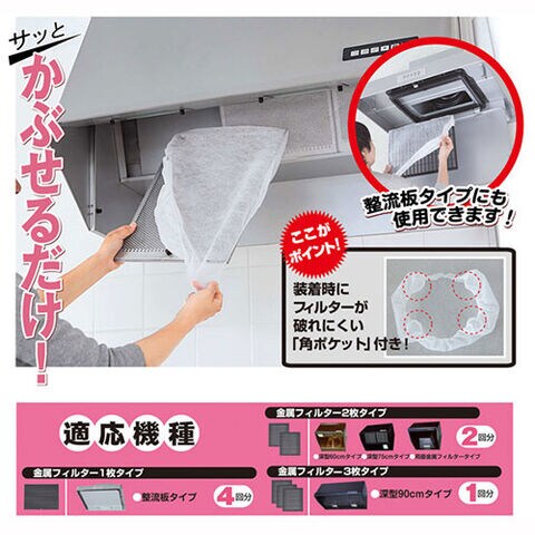 レンジフードフィルタキャップタイプ 4枚入