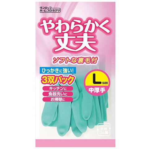 ダンロップホームプロダクツ 天然ゴム中厚手 Lサイズ 3双組 グリーン MMT67905