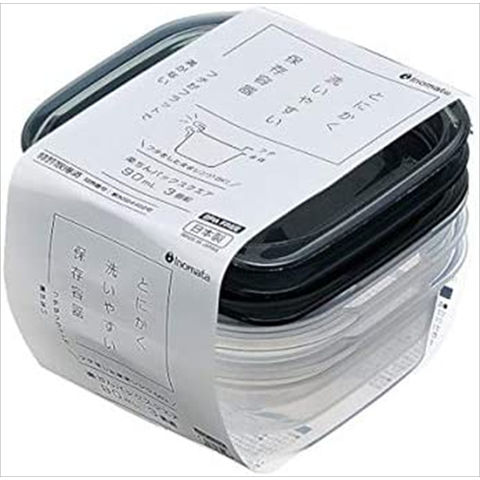 イノマタ化学 保存容器 楽ちんパック スクエア 90ml 3個入 1843 クリアーブラック 電子レンジ加熱OK