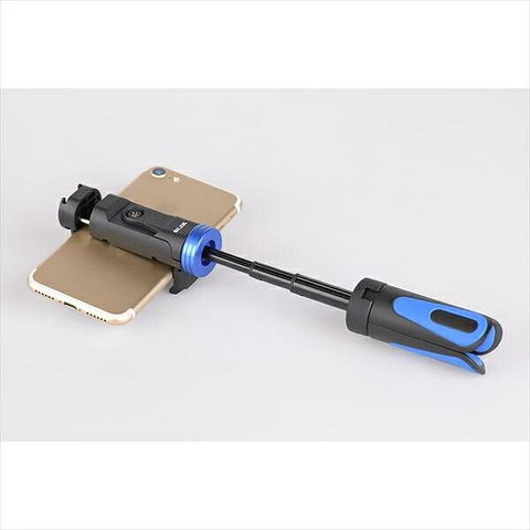 ●スマホホルダー部分は、向きを変えること(首振り)が可能。横位置・縦位置にも両対応。さらに36°ティルトします。さらに、センターポールが90mm伸縮し、自撮りにも対応。