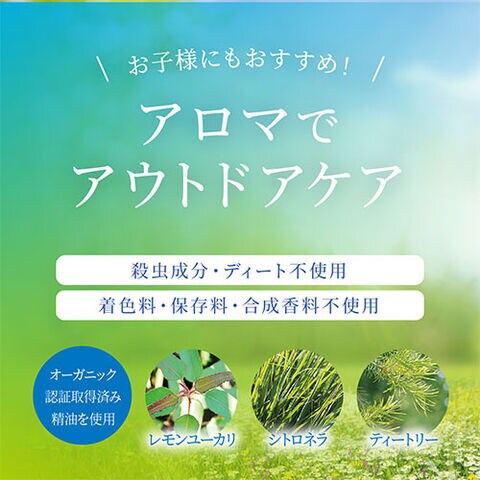 ●成分 : エタノール、水、グリセリン、ユーカリシトリオドラ油、香料(シトロネラ油)、ティーツリー葉油