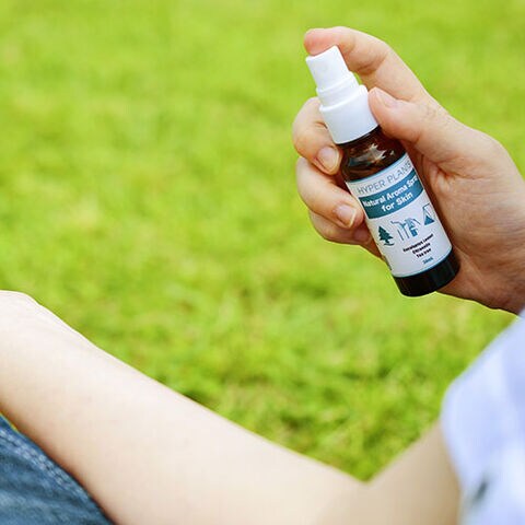 虫が苦手な天然精油をブレンドした携帯用ボディスプレー。キャンプのお供に、夏のお出かけ前などにも。